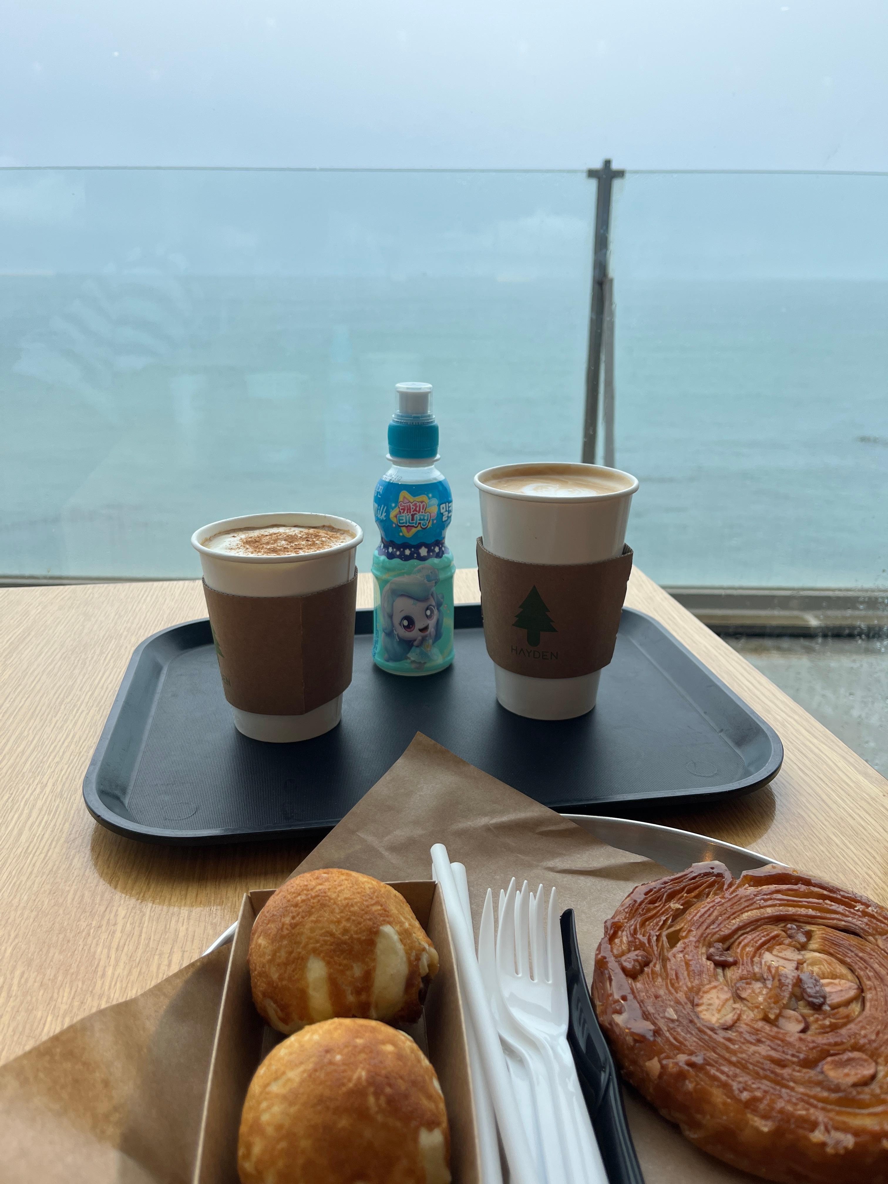 헤이든은 기장 오션뷰 카페로, 넓고 쾌적한 공간과 다양한 음료 메뉴가 특징입니다. 비가 오는 흐린 날씨였지만, 오히려 그 덕분에 하늘과 바다의 경계가 모호해지는 몽환적인 풍경이 펼쳐져 특별한 감성을 느낄 수 있었어요. 바다를 정말 코앞에서 볼 수 있어서 파도 소리와 함께 더욱 평화로운 시간을 보냈습니다.
