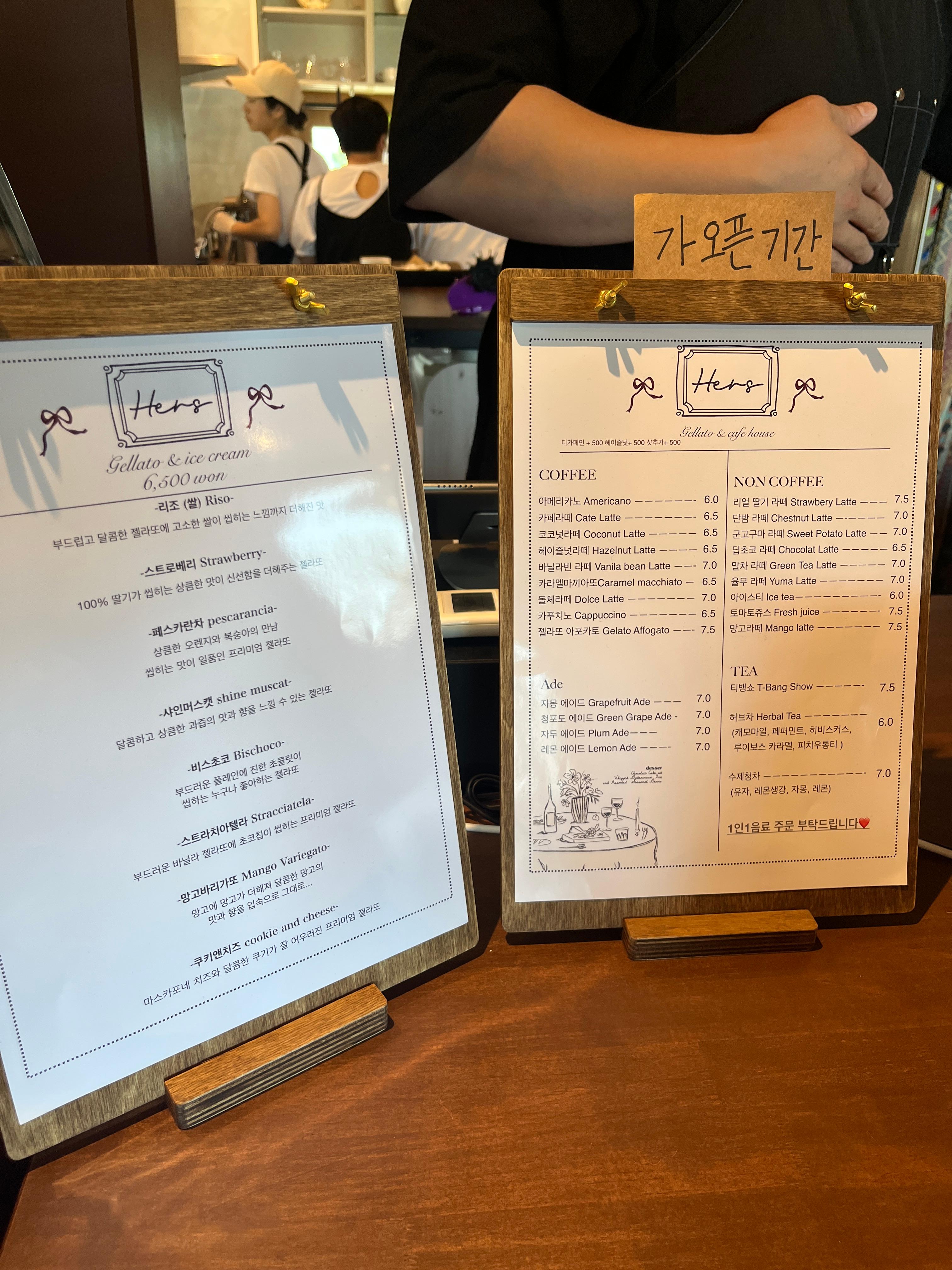 저희는 디카페인 아이스 아메리카노, 젤라또 아포카토, 젤라또 하나 (샤인머스켓 맛) 주문했습니다