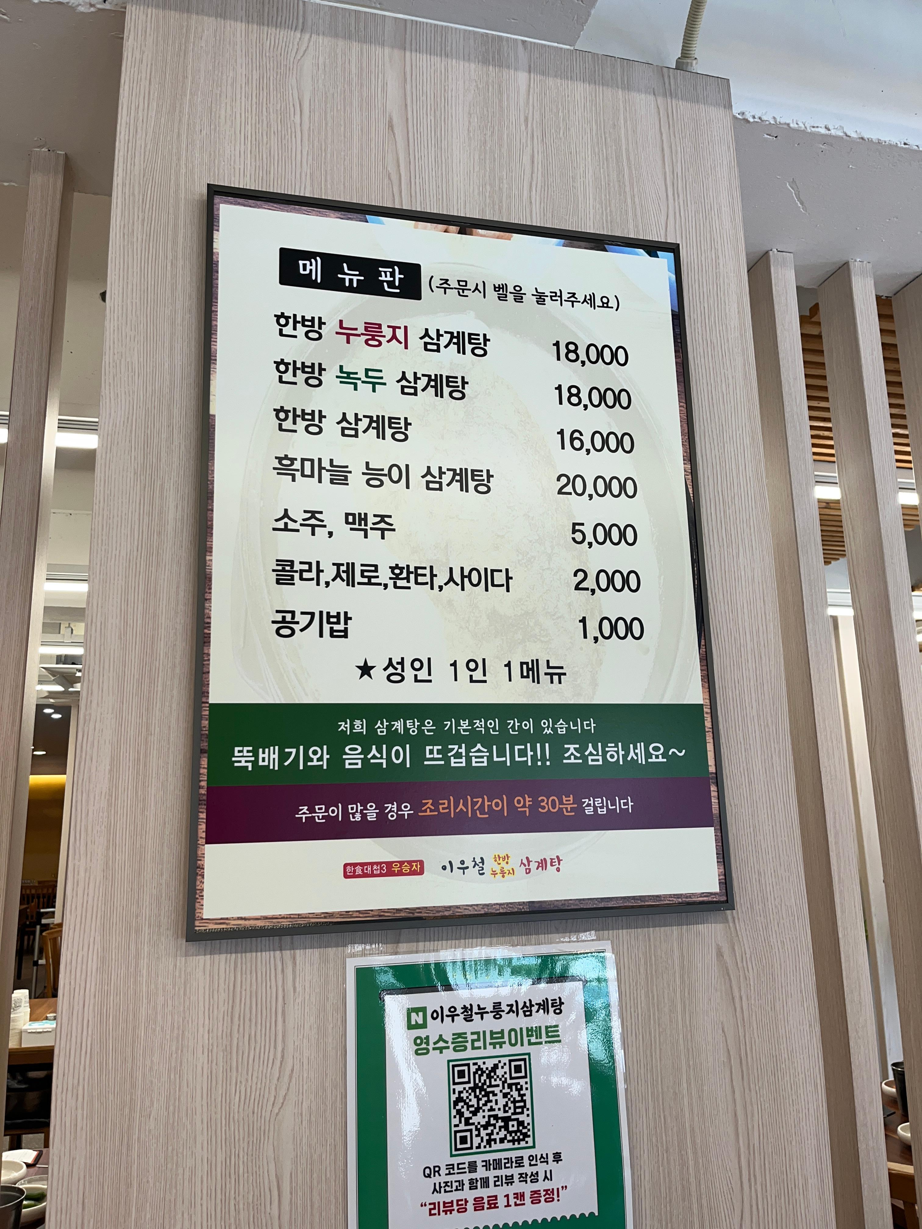 👉 사직동에서 보양식 먹고 싶을 땐 이우철 한방 누룽지 삼계탕 사직점 강력 추천합니다.