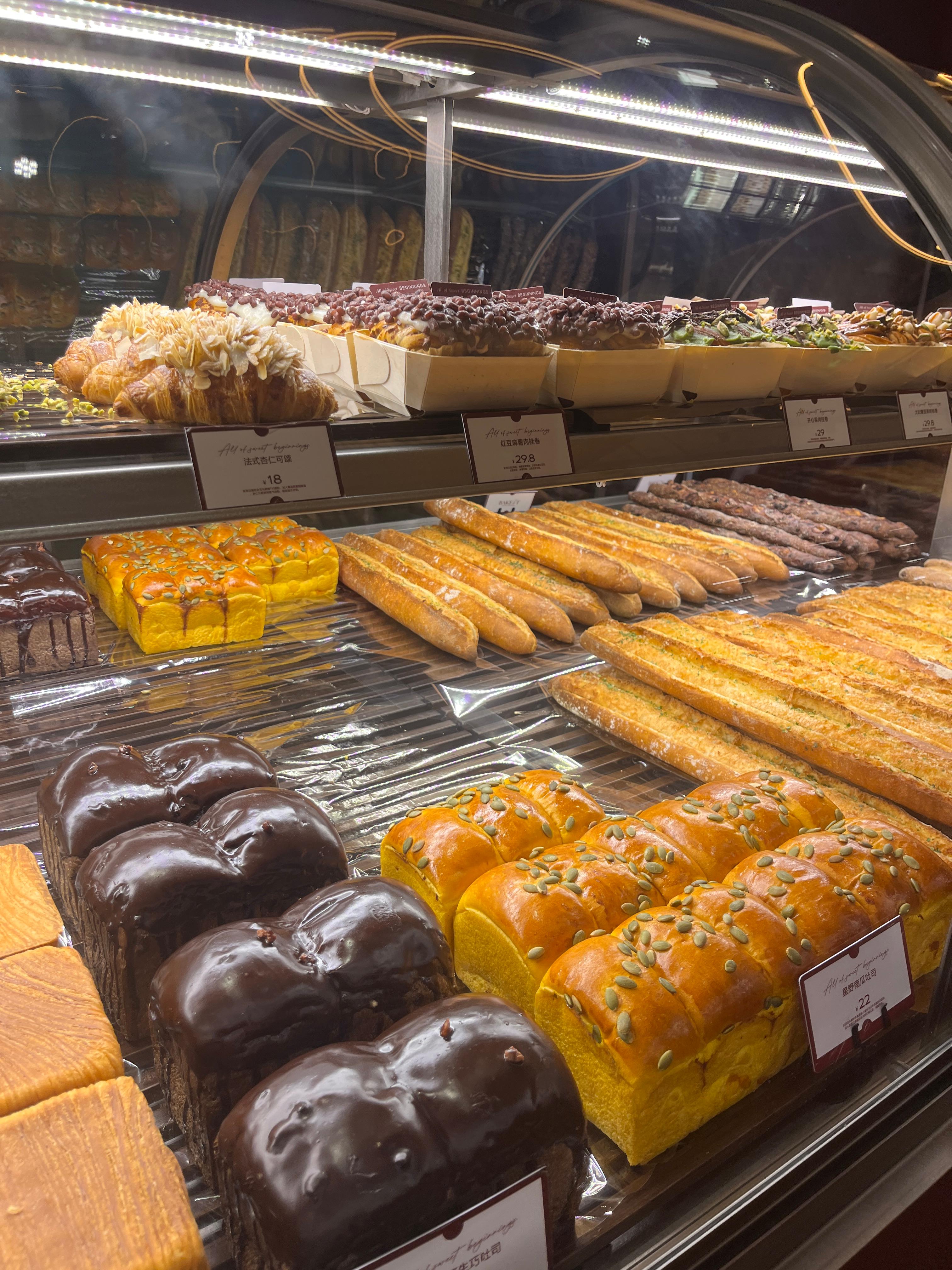 비교적 중국스럽지 않은 빵집이에요 (중국 빵집에 많은 이상한 가루?같은거 올라간 빵 없어요)