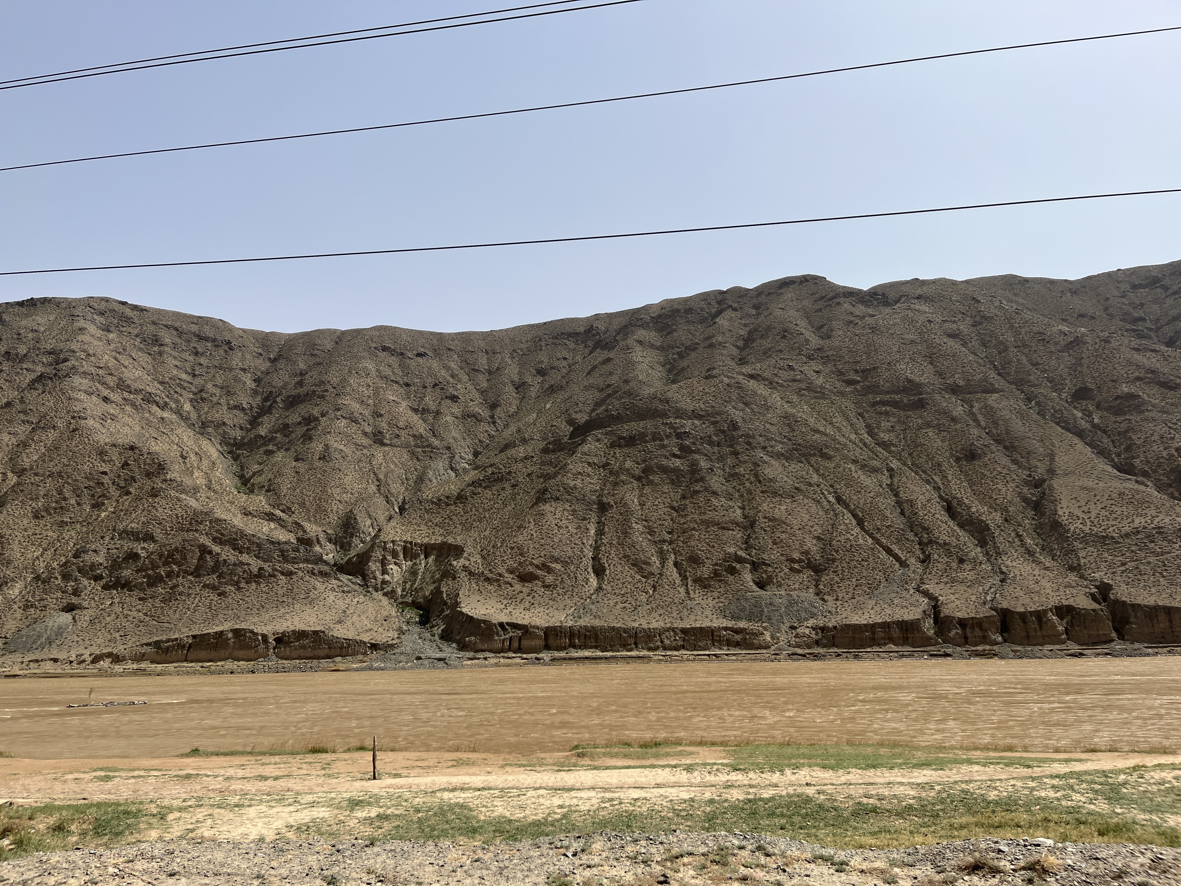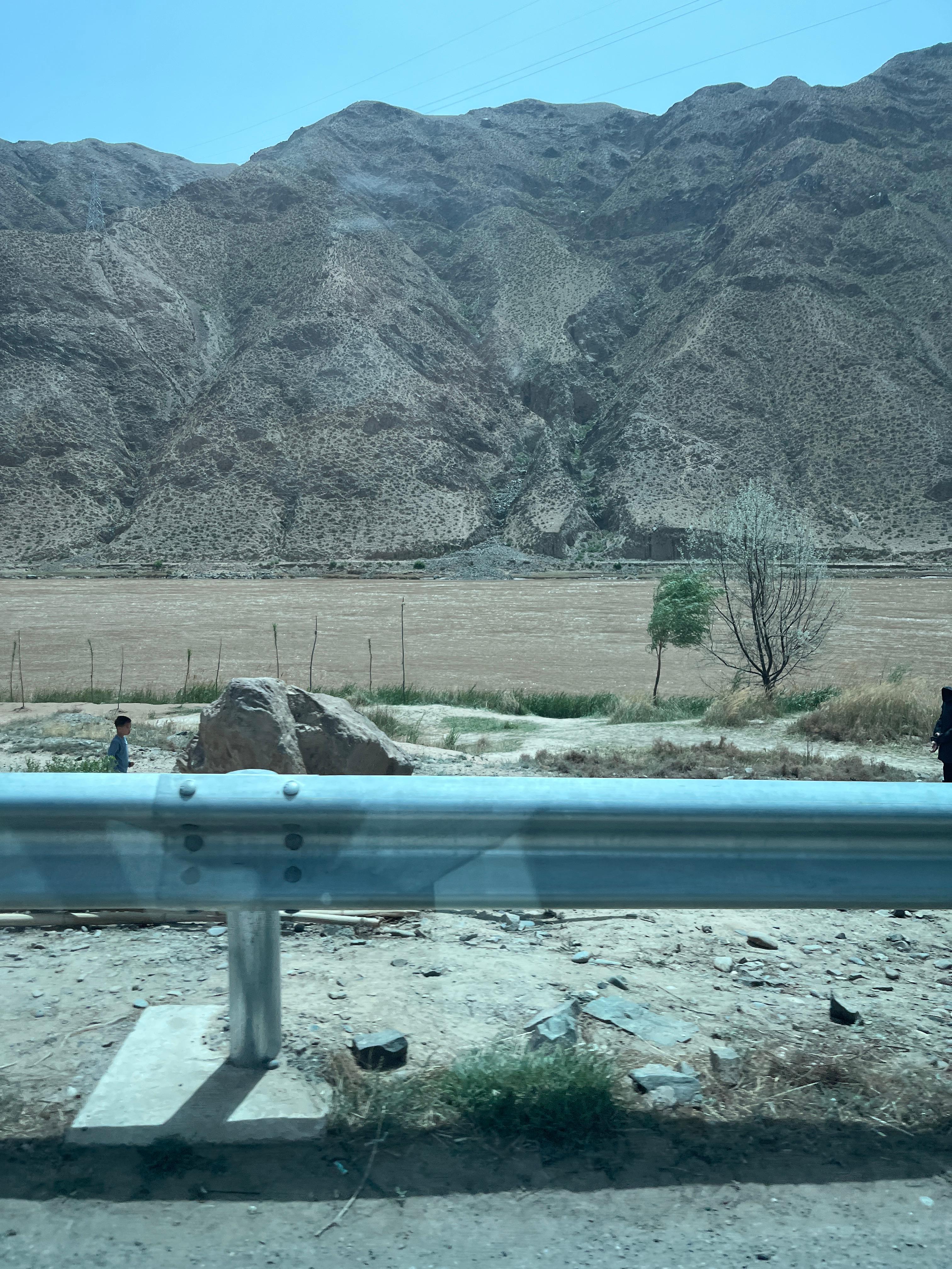 고속도로 톨게이트 있는 곳을 지나면 비포장도로가 나오고, 조금 지나면 황하를 따라 가는 1차선 도로로 진입합니다.